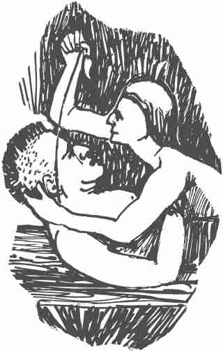 The Pact with Evil As Chiwatenwa and his brother approached the triple row of twenty-foot-high palisades which enclosed their village, they were greeted by the sounds of the customary howls and shouts which were believed to chase away the demon of sickness. Fires had been made close by their cabin, and men and women danced and ate and chanted wildly around them, invoking their charms to frighten away the demon which was housed in the body of Chiwa-tenwa's father. Aonetta, looking childlike in her simple dress of skins pieced together at the shoulders and falling loosely to her knees, sat quietly next to her father-in-law. He was lying on a mat on the ground which was the cabin floor and was breathing heavily. When Chiwatenwa entered, Aonetta began to cry. "He was stricken as he sat smoking his tobacco," she said. Chiwatenwa knelt and bent over his father. "Your dream. Father? What is your dream?" His father turned his eyes toward Chiwatenwa. He did not answer. Chiwatenwa closed his dark eyes tightly for a moment, and then opened them again. The tears stayed back. "Father, if you do not tell us what you have dreamed, how will we know what we must do to save you?" His father answered painfully, "I have no dream." Teondechoren spoke up. "The magician will tell us the nature of his illness. I shall send for the one who is most powerful, the one who is called the master magician." A picture of a grotesque creature with a hooked nose, beady eyes, and a twisted, hunched body came to Chiwatenwa's mind. To add to his appearance of horror, this magician kept one-half of his skull closely shaved, while the hair on the other half of his head was greased and twined around splinters to stand upright. Chiwatenwa shuddered, but he hoped that the ugliness of this most powerful magician would scare away the demon in the cabin. This master magician came, and the first instruction which he gave after he looked at the sick man was: "I will take a sweat." The squaws immediately made a tent of skins within the longhouse and fed the fire until it was scorchingly hot. The magician stayed near the heat until his body was sweating profusely. After the sweat bath, he dried his body and began to streak his face and body with paint. When his body was thus prepared, the magician slipped on a head mask. It gave him the appearance of a horrible unearthly creature whose face was a composite of distorted animal features. Outside the cabin, the magician gave orders that now all were to join in and do as he would do. He picked up his tortoise shell, scooped out and dried and filled with beads to make a rattle, held up on a stick. With a chilling shriek, he raised his arms and shook the tortoise shell rattle and leaped high in the air, beginning his dance. He jumped and tumbled and sprawled on the ground, still shrieking or growling all the while. The Indians of the village joined him till soon the very air seemed to vibrate with the din of howling voices and the frenzied thumping of feet. Chiwatenwa stood like a statue at the cabin entrance, his arms hanging limply at the sides of his massive bare chest. He watched the ritual, and in his heart the question tortured him, "Is this the way a man must die?" Teondechoren was dancing as the magician demanded, but suddenly he stopped and came over to his brother. "Why are you not helping to scare away the demon? Do you wish our father to die?" Chiwatenwa hesitated. "I--1 am staying with Father. I am waiting to hear what his dream will tell him. Soon he will dream--he must!" Chiwatenwa turned away from his brother and went back to his father's side where Aonetta was wailing softly. "My son--" Chiwatenwa knelt quickly, bending his head to hear his father's words. "Take my oqui from around my neck. It has served me well. It will serve you well, too." Chiwatenwa carefully lifted his father's head so that he could remove the thin piece of leather from around his neck. His father's good luck charm was a beaver's tooth. He had bored a hole through the tooth and wore it around his neck, strung on the piece of leather. "Because it is your gift to me. Father, I shall cherish the charm." But in his heart, Chiwatenwa knew that he would never use it. He had no faith in charms. A few minutes later, a sudden silence jolted him. Chiwatenwa caught his breath in a suppressed sob. Then he said to Aonetta, "Tell the magician to go away. He has no power over life and death." ![]() Joseph took the charm from around his fathers neck Teondechoren was strangely quiet for many weeks after his father's death. It had been his decision to call the magician, and his father had died. He had used the wrong remedy. If he had called a man skilled in the fire dance, his father would have been cured. He had been present at many of these festivals of fire, and he vividly recalled how the dancer could handle hot stones, bathe in boiling water and even carry live embers between his teeth--and never once get burned! No ordinary man could do that. The more he thought about the fire dancers, the more Teondechoren became convinced that these were the most powerful magicians, the ones most capable of healing the sick. He--Teondechoren--would become great in the practice of the fire rites. Teondechoren began by slipping away from the men of the village and going off to a secluded spot alone. Here he would make a hot fire and start his practice of how to handle flame and embers without becoming burned. But soon he had to admit that his hands and teeth were not fireproof, and he could hardly pretend that they were. "A demon must help the fire dancers," he concluded. "Perhaps if I fast for many days, and then dream well, my dream will tell me what I must do to be one of them." Chiwatenwa noticed that his brother was fasting, and misunderstood. "You must not starve yourself and become sick because of your sadness over our father's death," he said to his brother. Teondechoren remained silent. At the end of his period of fasting, 